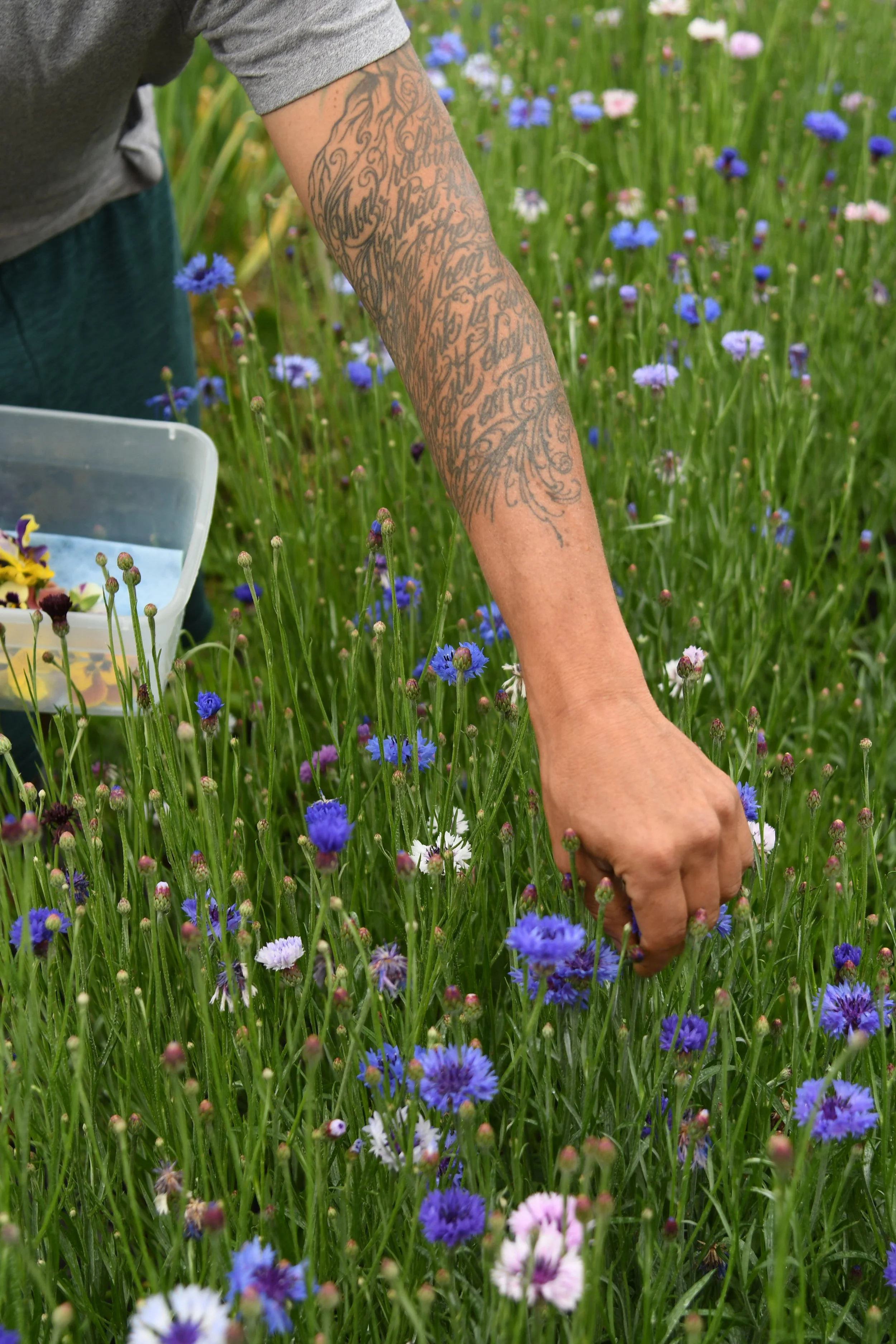 ….That’s not the only change up of our normal routine: we are not at the market today!….Some cool crops we have in the field this season come from the mind of one of Carlos’ inspirations: Dan Barber, from New York…Carlos giving some serious Long Weekend-vibes!