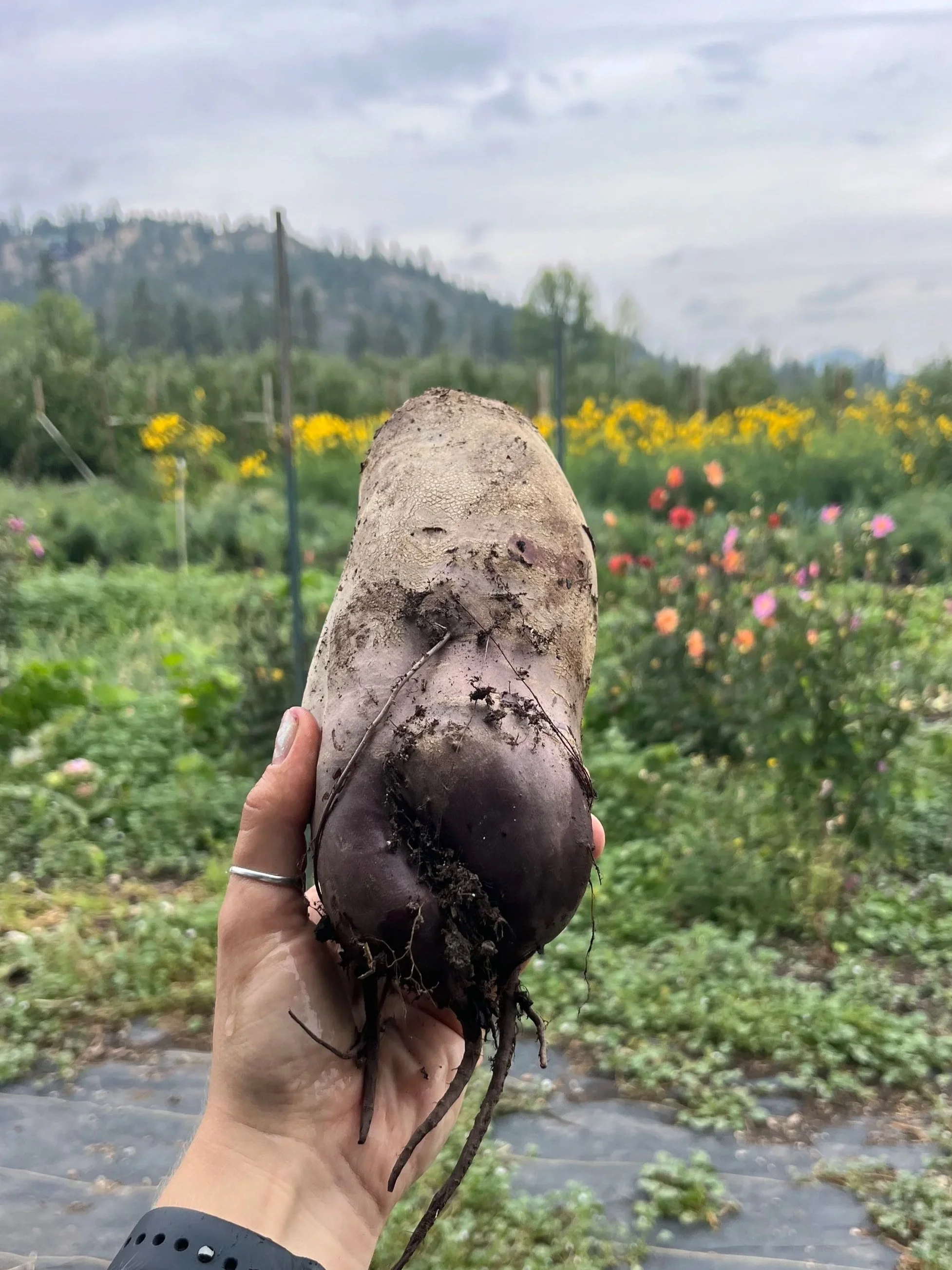 We’ve got monster beets for sale this week! Our purple beets got so big, they couldn’t handle their greens. Come check out and find the biggest one you can.
