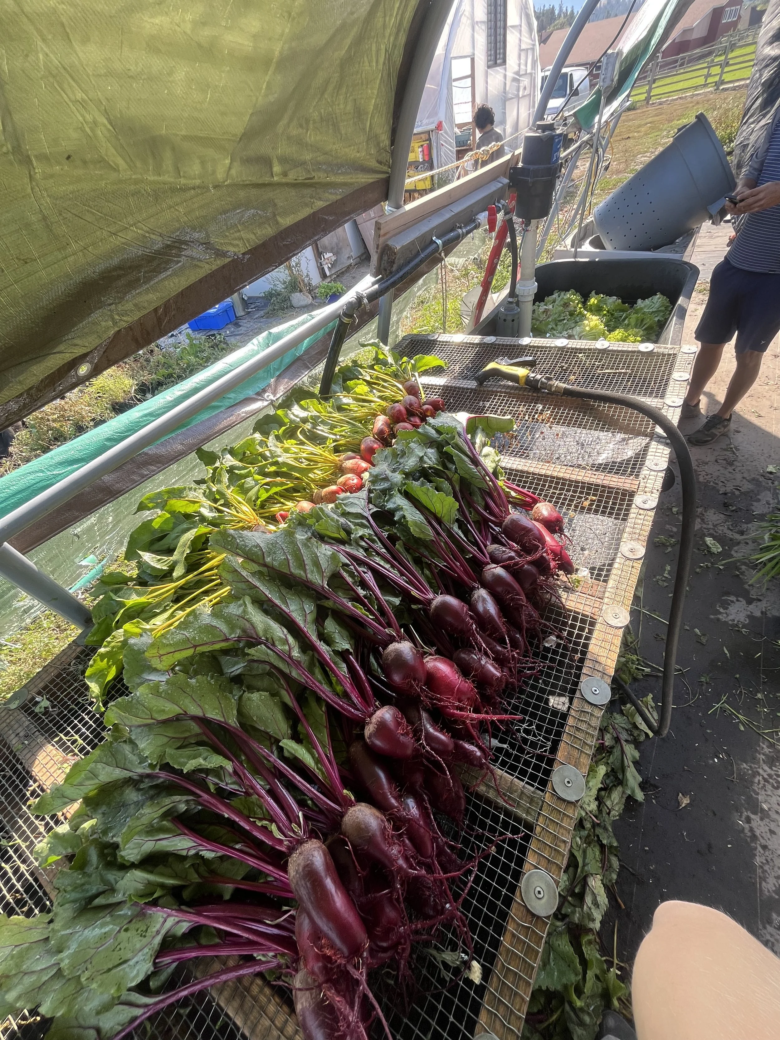 We’re in our final weeks of big harvests, dismantling the cucumber patch, pulling the few melons off the vine, eyeing the squash down the hill and savouring the lettuce and flowers while they are still here. We’ve mowed down some crops and have begun putting the beds to…well, bed! We also spent some time this week separating garlic heads into individual cloves for planting. Our carrot patch is thriving! Sunchoke harvest happening real soon, and we will be doing a massive basil harvest soon, to prep for lots of ready-made pesto (stay tuned).